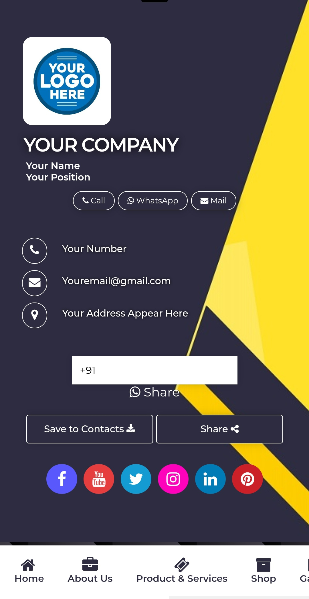Design your digital visiting card in 2 minutes - it's easy, elegant and free. This Online Vcard is always in your pocket, never tears and never runs out. Your Digital Visiting Card can be easily updated with our user-friendly dashboard, so you won't need to re-print a business card again.